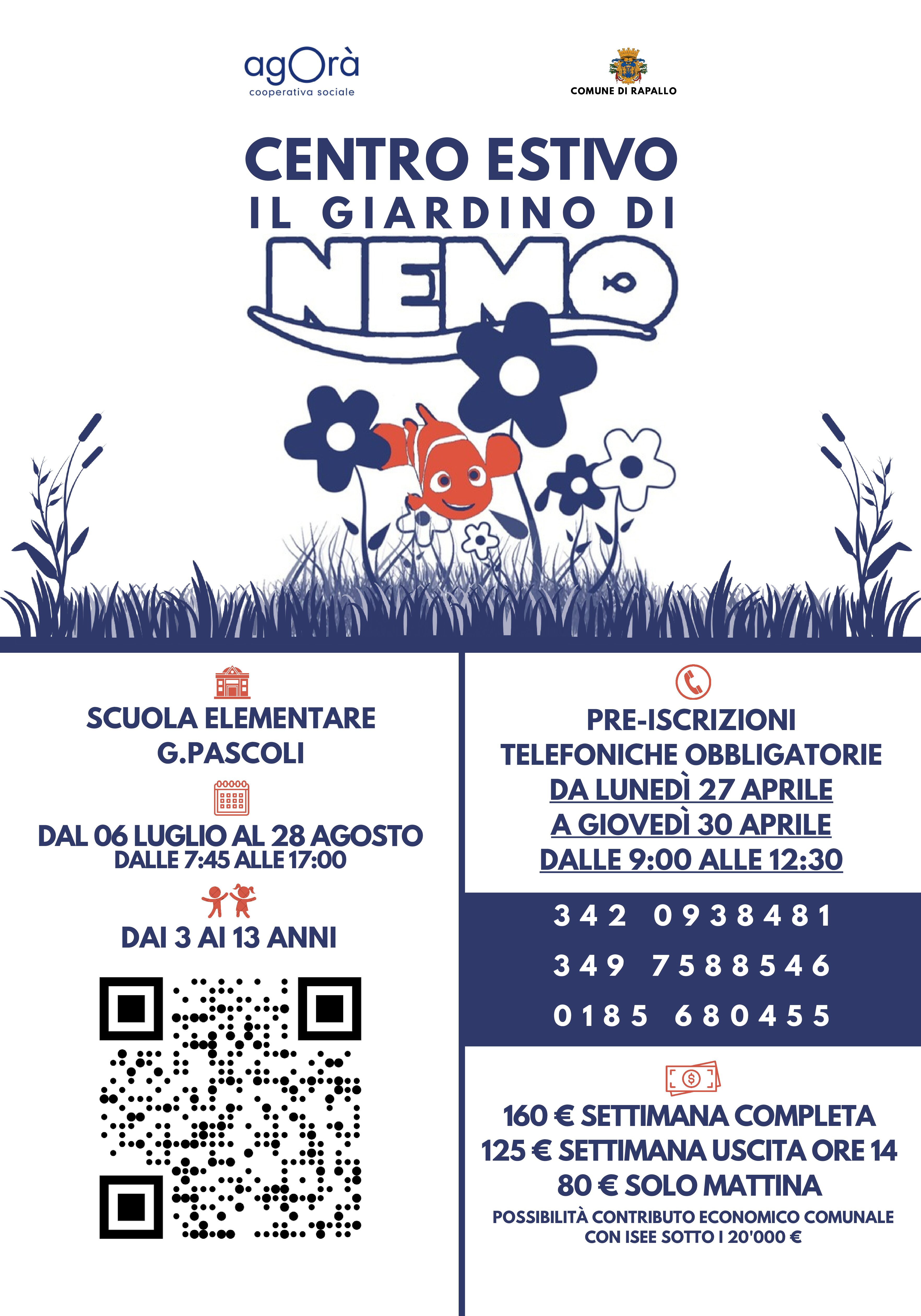 Anche quest’anno, si aprono le prenotazioni per il centro estivo Il Giardino di Nemo a Rapallo, che avrà sede presso le Scuole Pascoli, in Via Tre Scalini 16, dal 6 luglio al 28 agosto 2026.