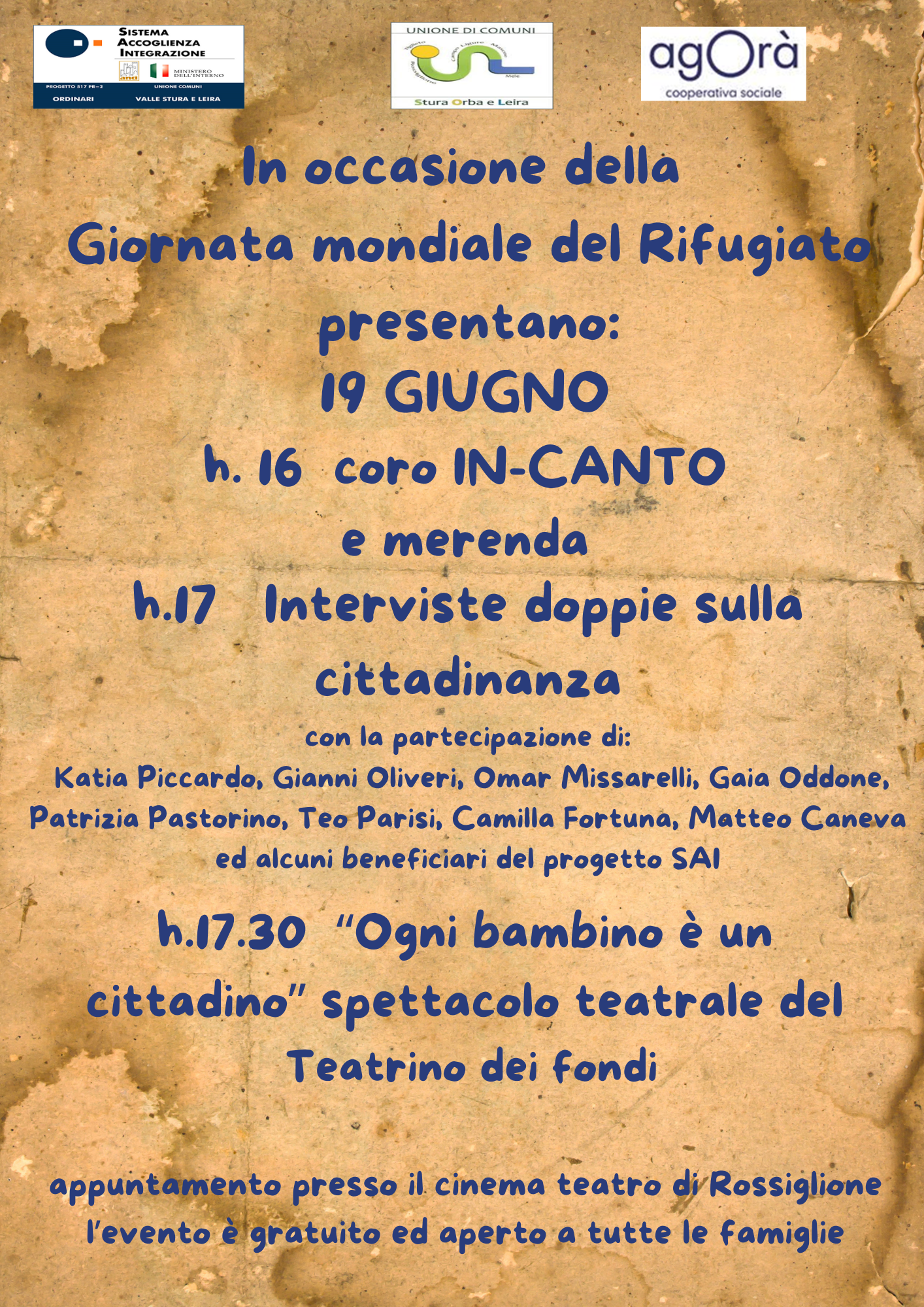 - 19 giugno 2024– “Ogni bambino è un cittadino” dalle 16 al Teatro di Rossiglione (GE) e altre iniziative collegate – SAI SOL Vallestura