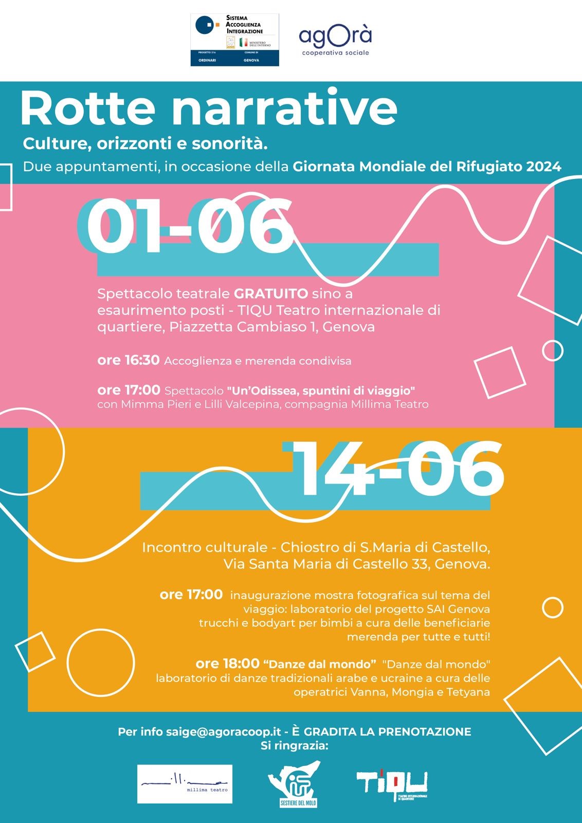 - 1 giugno 2024 – “Rotte narrative” dalle ore 16 al Teatro TIQU, Genova – SAI Genova